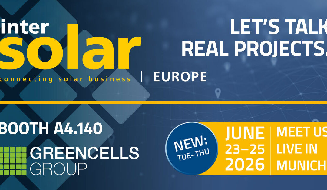 From 23–25 June 2026, Greencells will be exhibiting at Intersolar Europe in Munich – Hall A4.140.